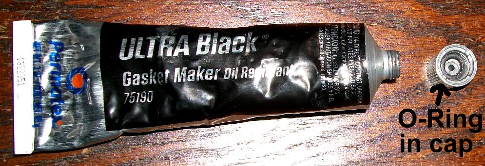 I really like Permatex Ultra Black Silicone. I use it for many things on the Supra especially where sealing oil leakage is concerned. I've used it on valve cover gaskets, oil pans, oil hoses, transmission case sections, differential cover. It's as good or better than that orange FIPG Toyota sealant. The only thing that's trouble is once you open the tube, it tends to harden under the cap into the tube. Every time you go to get some you have to dig a hole through the hardened silicone. I tried things like screwing the cap down over Saran wrap and keeping it in a zip lock bag with not much success. Now, I think I've found an answer to this problem. Take a new or used 7M fuel injector O-ring that seals the injector to the rail and use it as a gasket in the cap of the Ultra Black. See photo. I did it a week ago and used some today with absolutely no hardening found. I recommend not cranking it down because the caps tend to split in past experience without an O-ring. Tighten the cap down enough to snug it. Another thing that also may help is to put a little bit of silicone grease on the threads of the tube to discourage air infiltration.