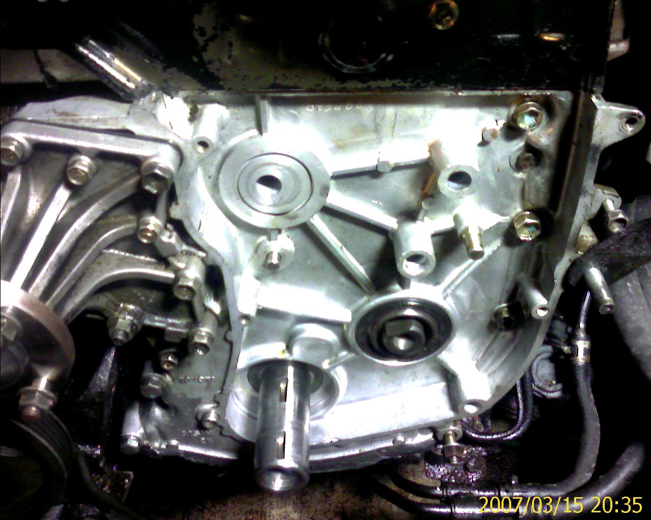 ok well i got everything off, i went to pull off the oil pump pulley and the oil driveshaft seal literally fell off when i took the pulley off. So im thinking that was probably the leak. Im doing the front main anyway. I got a pic of what it looks like here, with out the main seal, and the new oil seal in.