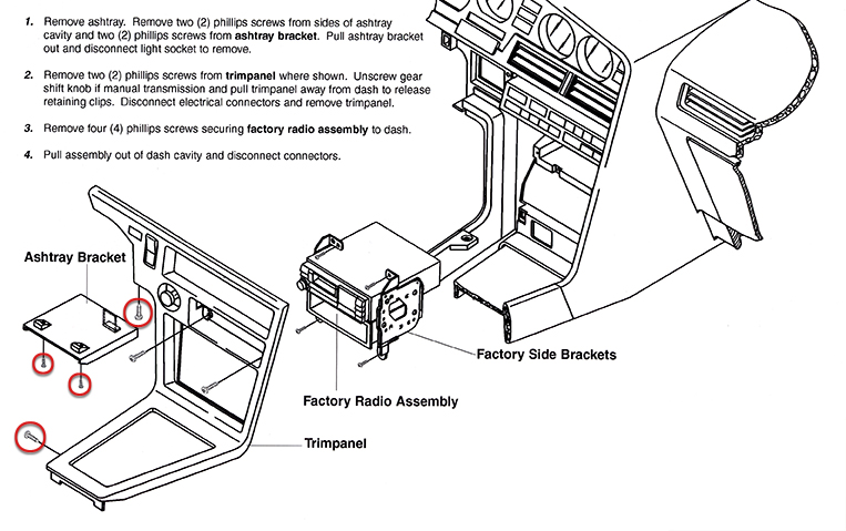 I'm looking for the exact sizes of a few screws for the interior of my '87 Supra. I've included a Crutchfield illustration with the ones I'm looking for circled in red.