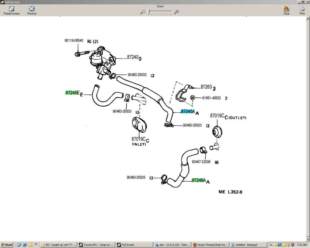 All of the hoses. Make sure the system is completely purged of air, the fan clutch is good, the shroud is present, check for blockage between the radiator and a/c condenser also if front of the condenser. The 7MGTE cooling system is complex and has many points of potential failure but in good condition it is capable of handling some serious heat.