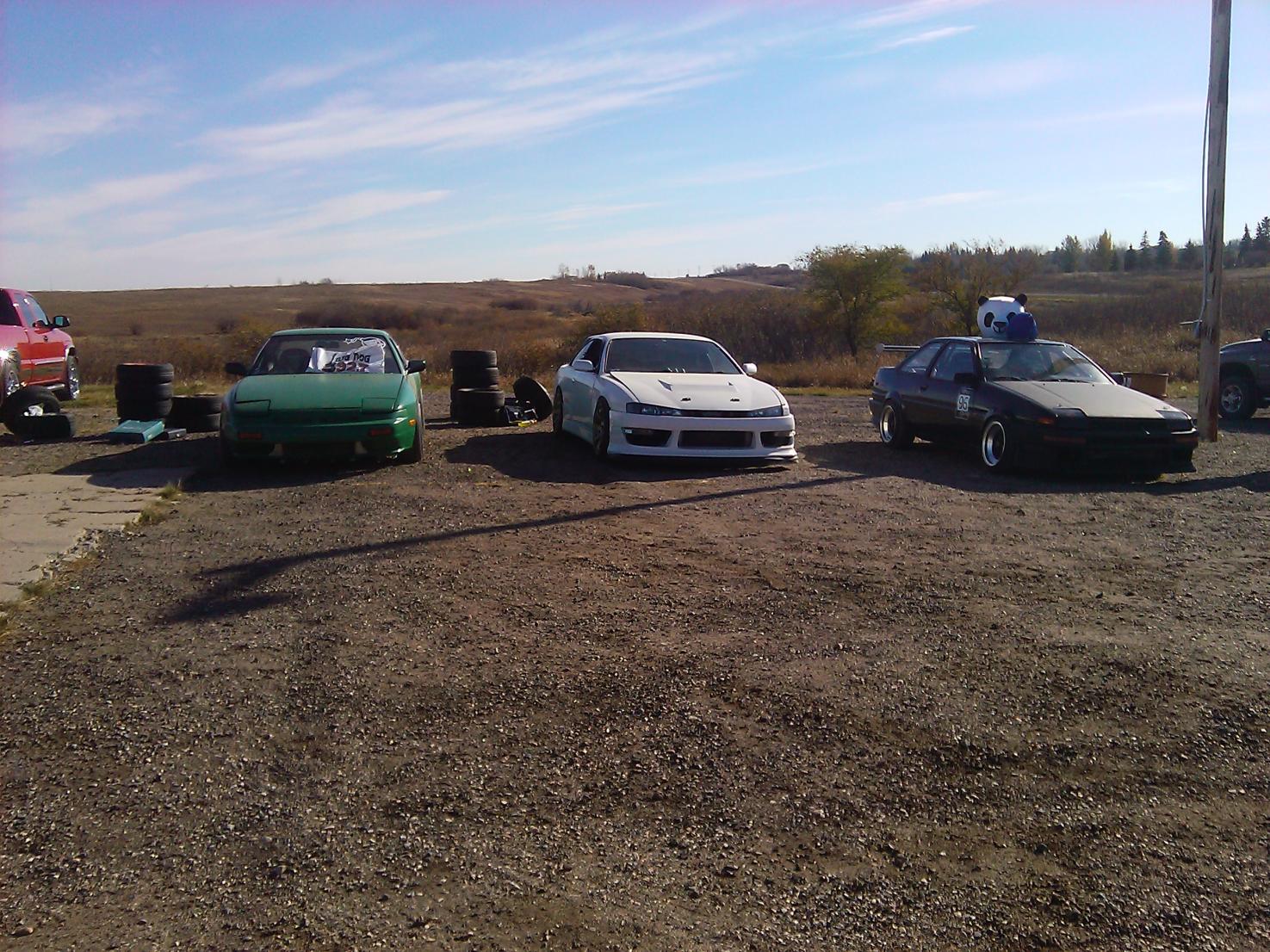 Well Regina drift day was a smashing success! Friday I took the supra out for its official make it or break it run, took it to toyota and they checked out my oil pressure problem and narrowed it down to the pressure sending unit. From there I bumped into my friends randomly while driving back home and we ended up heading to the shop out in the boonies. We que'd the music and worked on the cars from 3 pm to 2 am that night to get them ready for the drive to Regina. Needless to say it was a long/short night, we all only got about 2 hours of sleep before heading out.