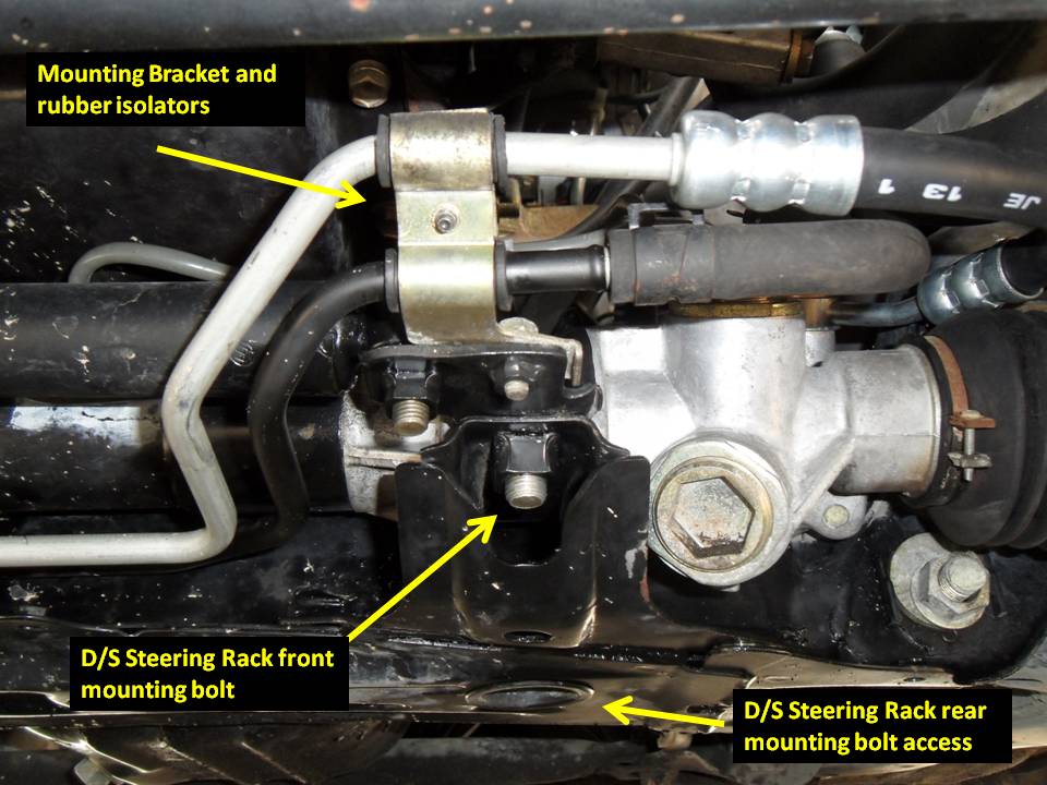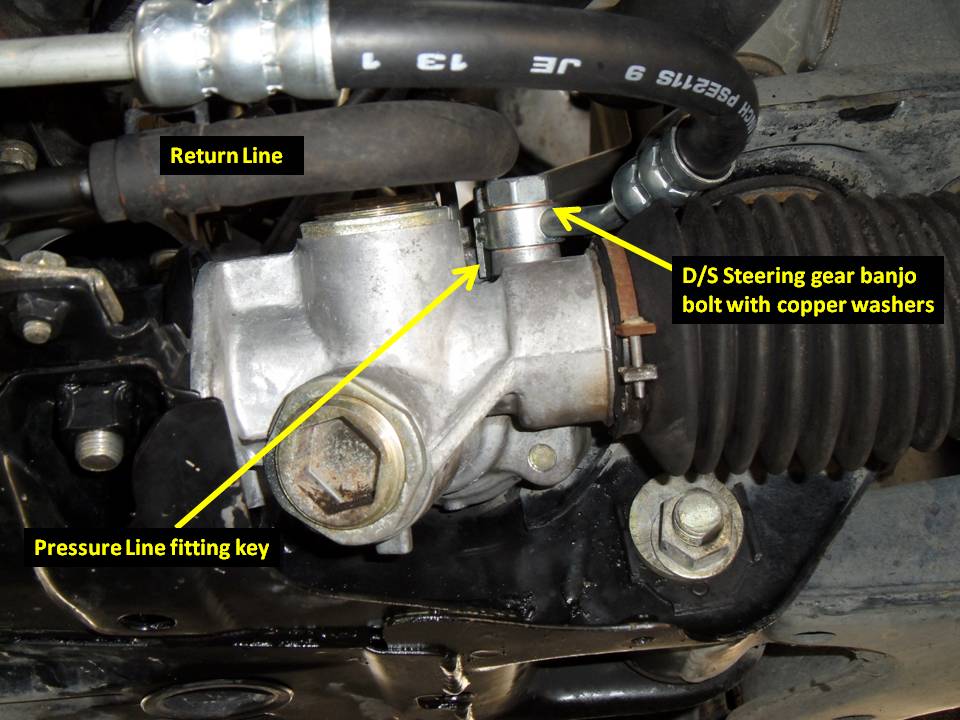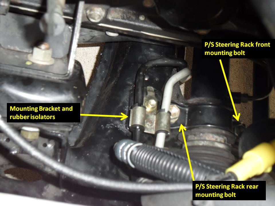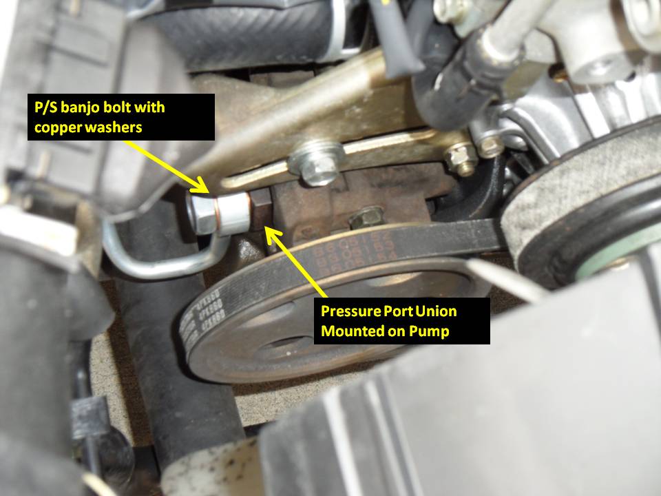 .Here is how I changed my power steering pressure hose, with an OEM replacement from Advanced Auto. It is helpful to degrease the areas you’ll be working around, especially the steering gear. 1. The air intake needs to be removed to be able to get to the hose where it connects to the pump. 2. Then the two brackets that hold the return and pressure hoses to the frame need to be taken off. There is a small bolt that holds the top half of the clamp (8mm). 3. Separate the banjo bolt (22mm), from the Pressure Port Union on the pump (27mm). Fluid will pour out so be ready. On mine the Pressure port union also backed out of the pump with the banjo bolt attached, so I had to separate them once the whole line was off. Be careful there is an O-ring that goes between the union and pump. 4. Next the return line on the driver’s side (17mm) needs to be separated from the gear housing to get a socket onto the pressure line banjo bolt (22mm) which also has to be removed from the gear housing. I had to access the return line from above, and the banjo bolt from below. 5. Then the steering rack needs to be separated so the old hose can be pulled out and the new one can be put in. There are two bolts (17mm) on the top of the rack on the passenger side, and one on top on the driver side, and one that is accessed through a hole in the bottom side of the frame on the driver’s side. Unbolting the steering rack also let me turn it slightly so I could get the sockets on the steering gear banjo bolt easier. 6. Once I had the old pressure line out, I removed the return and suction line on the reservoir and the three mounting bolts (10mm) so I could remove the reservoir and clean the inside of it with carb cleaner and brake cleaner. Mine was really nasty on the inside and had to keep working it to get all of the grime off of the screen by rinsing it at the right angle so the dirt ran out of the return line port. It didn’t come out perfect, but it is a lot better than when I started. 7. I remounted the reservoir, and reattached the lines to it. 8. I had to reattach the pressure port union to the pump (51ft-lbs) (27mm). Be careful as you finger tighten it so the O-ring doesn’t get pinched. 9. Route the new pressure hose by lifting up on the steering rack to get enough clearance to feed the pump end of the hose up above the rack. Just get it close to how it originally was routed for now. 10. Reattach the banjo bolt to the Pressure Port Union, now on the pump. Use the new copper washers that came with the new hose. As you finger tighten the banjo bolt, slightly wiggle the end of the hose to make sure that the copper crush washers seat flat on the fitting. Tighten to 36 ft lbs (22 mm). Clearance can be kind-of tricky. 11. Reattach the banjo bolt on the driver’s side to the steering gear. This will be angled slightly toward the driver’s side wheel. The key on the end of the hose has to go to the left (as you are looking from the front). Again as you finger tighten the banjo bolt with new copper washers, you’ll want to wiggle the end of the line to get everything to seat flat. I actually even turned the end of the hose slightly extra towards the driver’s side to make sure everything seated properly. Tighten to 36 ft lbs (22 mm), and as with the other side, clearance is a pain because of the A/C lines directly above it. This is where I slightly twisted the steering rack to get the right angle for the torque wrench. 12. Reattach the return line to the steering gear housing (17 mm). Supposed to be torqued to 33 ft lbs, but there was no way I was going to get my torque wrench to fit down inside of there. I just snugged it up because it looked like soft metal. 13. Reattach the rack to the frame. The driver’s side clamp has a tab on the back side that needs to fit into a slotted “ear” on the top side of the frame. Make sure the rack is sitting flat and proper, and torque the four bolts to 56 ft lbs (17mm). 14. Reattach the pressure and return lines to the two mounting brackets, make sure you have the small rubber isolators in place and put the top of the clamps back on and tighten (8mm). The replacement one fits fine, but not exactly like the original. 15. Reattach the air intake, and vacuum lines on it. 16. Fill the reservoir with ATF ( I used Dexron III). When you start the car, it will drink it quickly. As I topped it off with the car running it spit a little bit out of the top of the reservoir, and made some whining and gurgling as it forced the air out of the system. To bleed it, just turn you wheels from full left to full right a bunch of times with the car running, and have somebody keeping the reservoir at its proper level so you don’t overfill it and you don’t let it suck air back into the lines. I did notice as it cycled through that it was a little foamy at first, but it is good now. 17. Pray to the banjo bolt gods and check for leaks—following these steps, I didn’t have any. Even though I didn’t take step by step photos, between the instructions above and the photos below, you should be able to get the job done. |