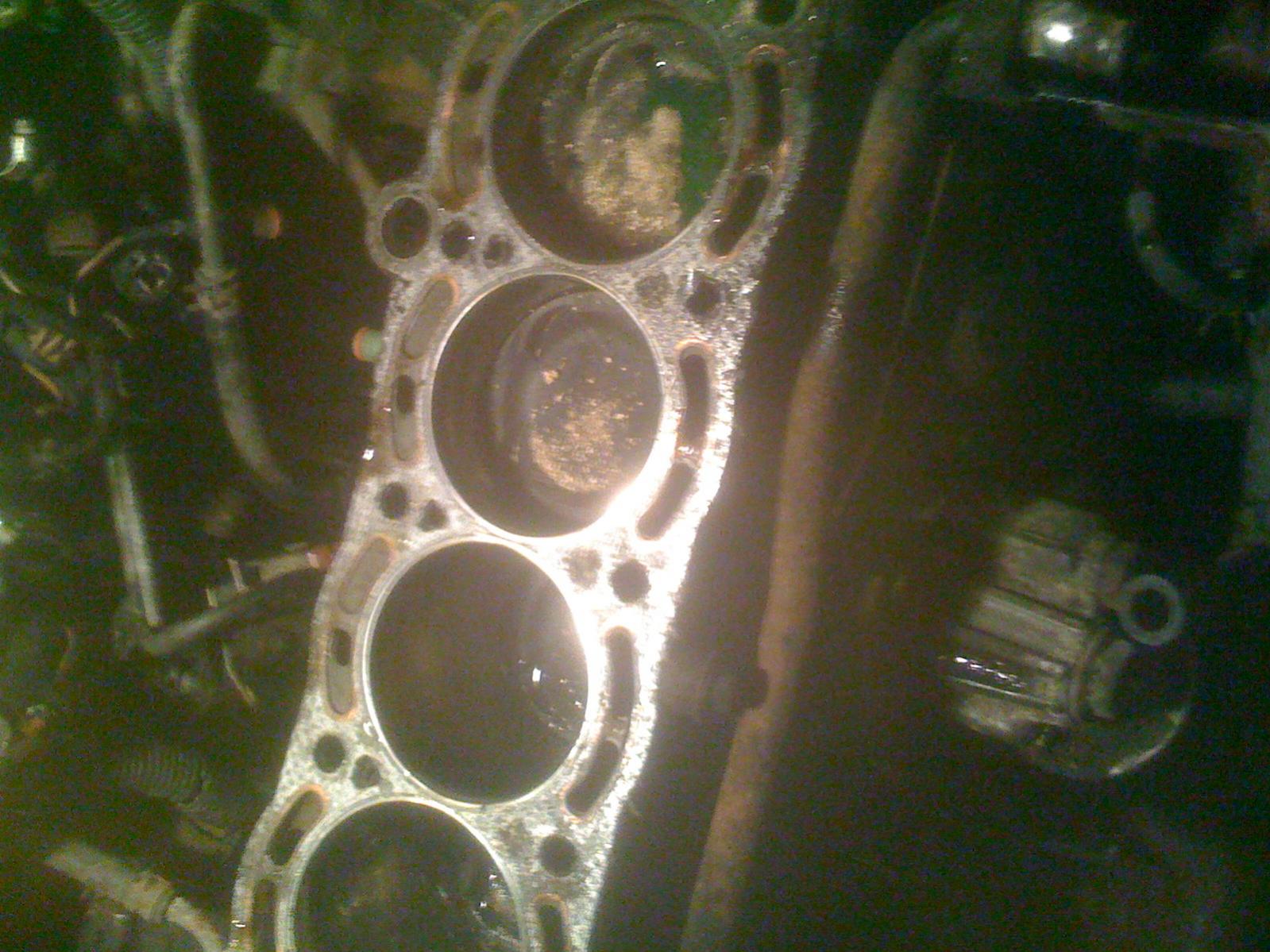 So i finally have the head off ater running into a million problems.. stripped bolts..impossible turbo (i ended up cutting the downpipe to get it out.. and even out.. i still cant seperate the elbow from the turbo..).. then went to take the head bolts off.. got to bolt #5.. and rounded the shit out of it lol.. so tried some extractor bits.. involved a little drilling (super scary).. that didnt work.. bought a new set of torx bits.. got the next size up and jammed that shit in.. and finally it crackked free... eveything was smooth there.. got the head off.. and holy shit the hg was in the shittiest shape ive ever seen..