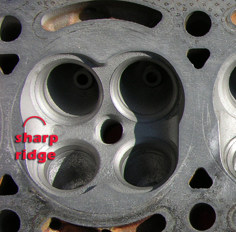 The good news on the block is no cracks after the magnetic test – so its just a hone on the cylinders and good to go. The bad news is the shop wants $500 to do a valve job on the head – even without replacing any valves. Claim the 24 valves takes a lot of labor and that OHC need to be ground to adjust! Attachment 2254 So – I took the head back to do a little porting and polish. The head had some casting marks and ridges from 20 years ago. Since I bought the car I have learned a thing or two about engines. One of which is that they are massed produced from casting molds. These molds are not all created equal and there can many flaws that are left as is in production. Some flaws include sharp ridges from casting seams and defects in the individual molds. Other are sharp angles from the machining process after the castings are poured. In production - they are all ignored. Attachment 2255 The cylinder chambers in the head have some sharp edges that can collect heat and cause preignition so I ground them off to smooth the transitions out the valve ports. Careful to not touch the valve seats. Attachment 2256 I focused on the exhaust ports and smoothed out the walls and take out any burrs and casting ridges. Just a little touch up on the intake side to remove any large defects as I understand its better to leave the “sandpaper” effect on the walls. Attachment 2257 |