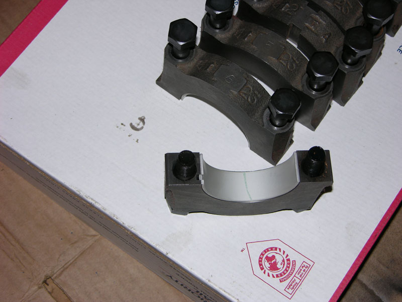 Assembled the crank and pistons into block. Laid the crank in on the new dry bearings and placed a piece of plasticgauge on the bearing face.