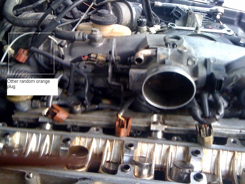 Well, everything is back together from my rebuild. I did a poor job of taking pictures in the beginning. I have a ground wire left over, and I'm not sure where it goes. My coil pack is grounded. I also have 2 orange female plugs between the injector rail and the intake. I can't figure out where they go. There were a lot of loose plugs in my car when I stated. Assuming some are because the car is 90 N/A, and the motor is 89 turbo...I took my chances and tried to start it.