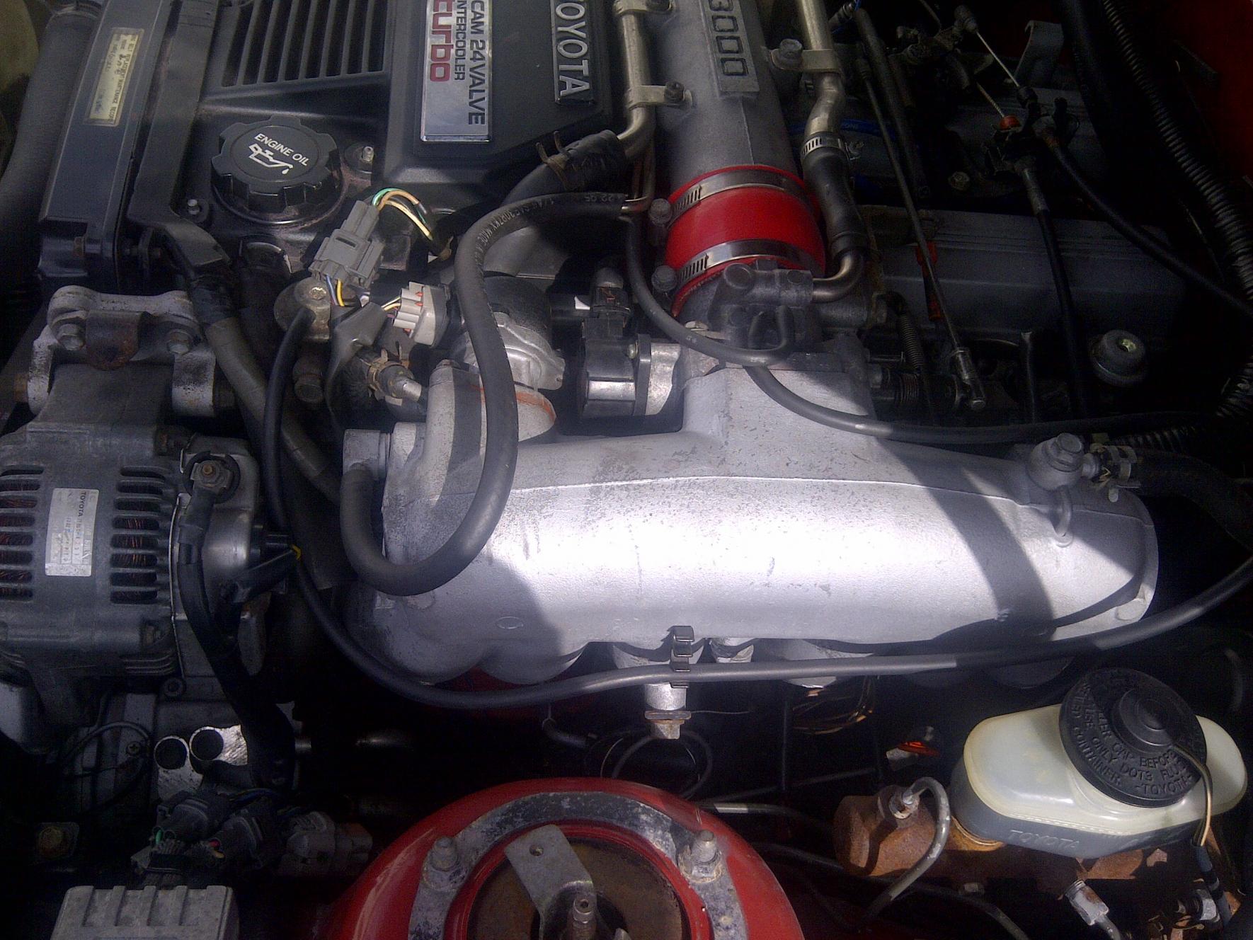 I bought a manual and I am doing a search on what exactly was done to this car. I will post pictures of the engine. I looked at the vin # and the car does have a turbo engine, intake is NOT a Y shaped. but the throttle and tps is of a non-turbo supra.