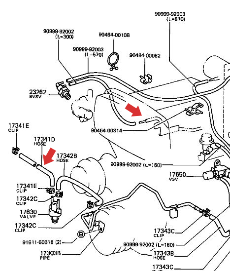 Could you post a picture of the line on the intake manifold? I dont have any more open valves to connect to. SO the small line runs to the vsv under the heater control and then the other line to the manifold correct? Thanks for all the help. I just installed a "new" 7MGE and finally got it running right now I just wanna make sure everything is connected to its right spot.