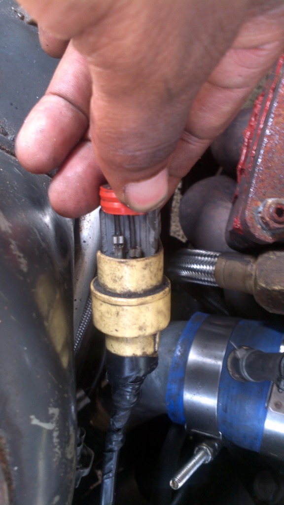 I was just looking and I couldn't find my sensor. I don't think it has one. But I did find my oil leak on my turbo, and that there's a plate missing on my dowpipe that goes to my cat.