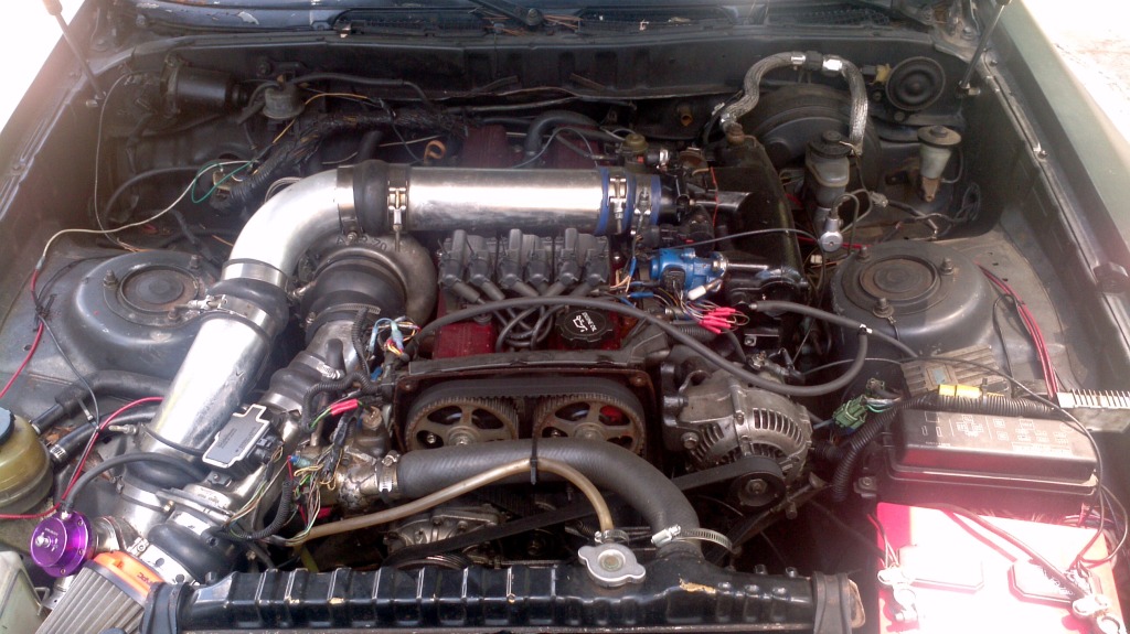 This is what my engine bay looks like. The guy I got it from says it was like that when he git it. I was hoping someone may recognize a few parts as I don't really know what's been done to it. Also, I was curious to see if a boost leak could cause a loss if oil pressure, cause the turbo to smoke a bit, and eventually cause the car to shut off. Any and all coments are welcome. This is my first supra and hopefully I can make it work for me.