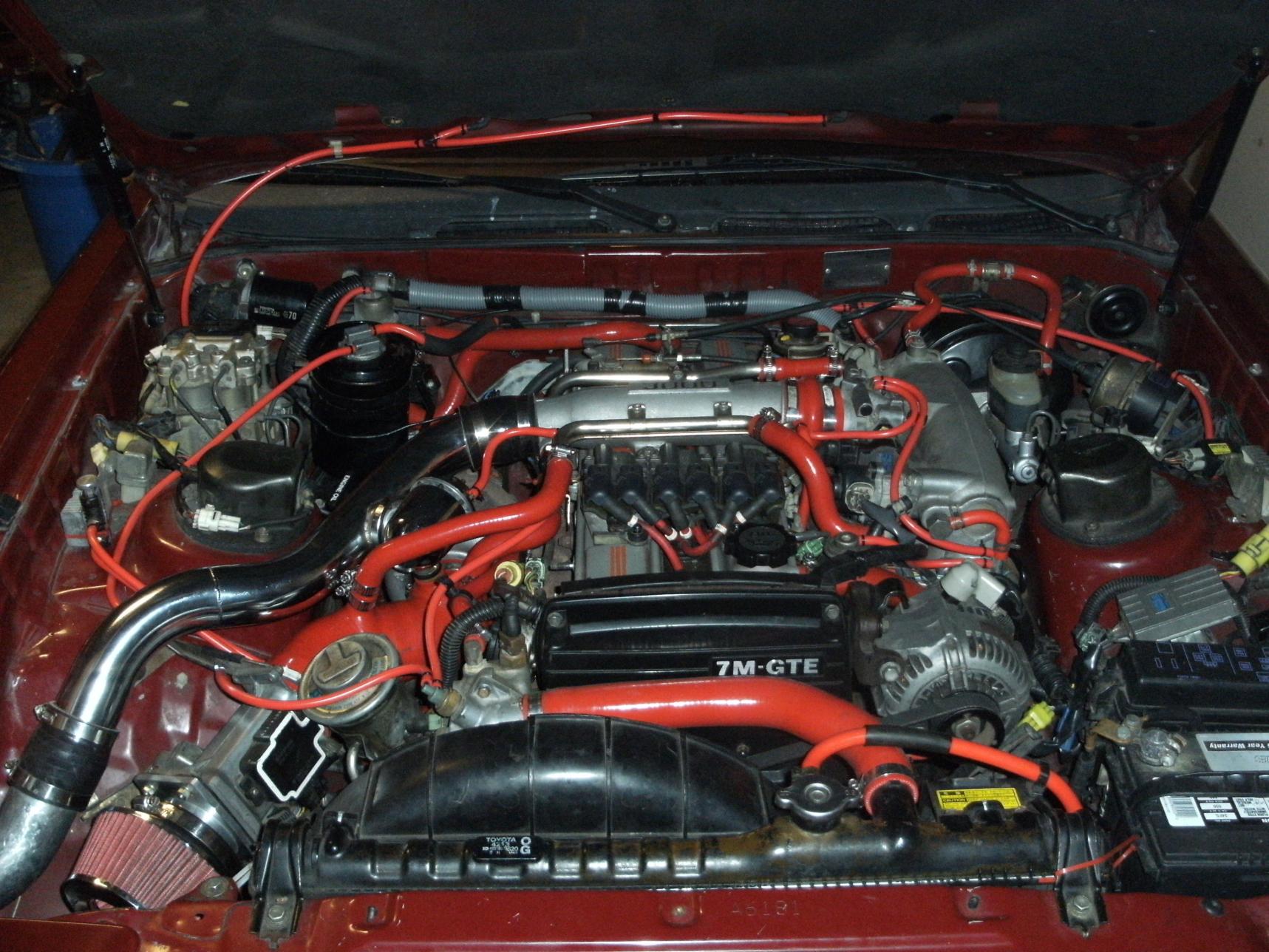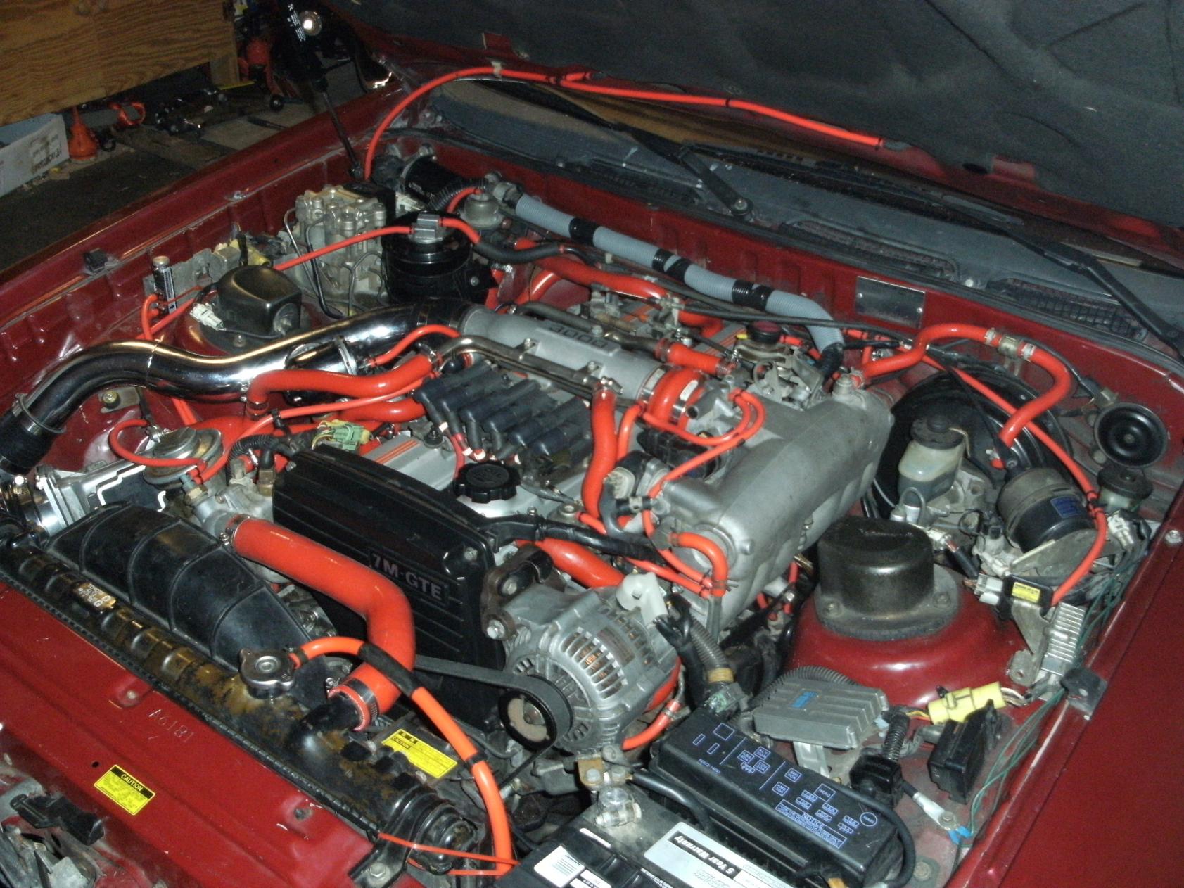 1988 7M-GTE Manual Turbo, Godspeed IC, Stock HG Torque to 90FP W/ Arp bolts, Silicon water hose kit, silicon vacuum hoses, Godspeed radiator, 2 12" electric fans. |