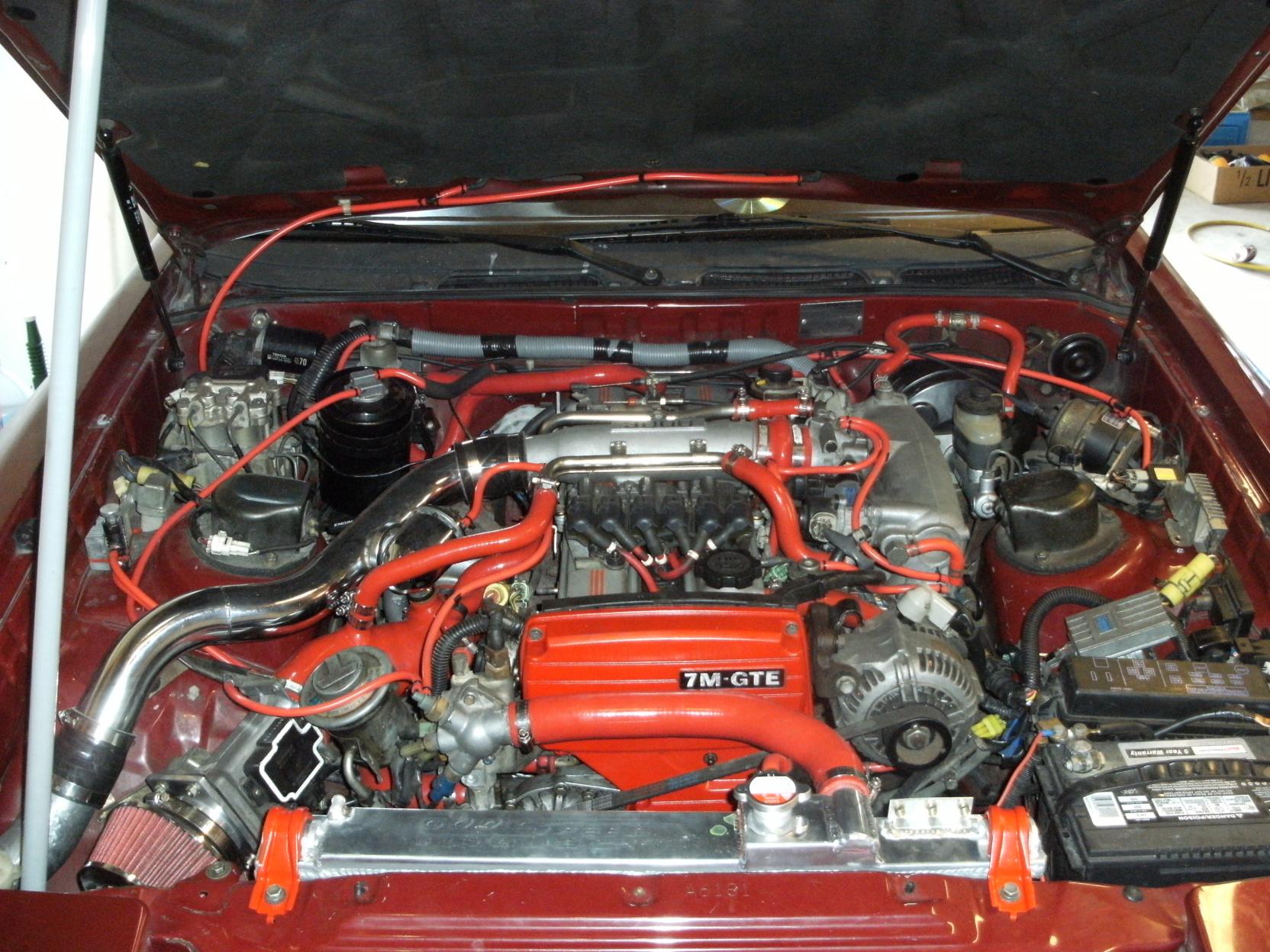 1988 7M-GTE Manual Turbo, Godspeed IC, Stock HG Torque to 90FP W/ Arp bolts, Silicon water hose kit, silicon vacuum hoses, Godspeed radiator, 2 12" electric fans. |