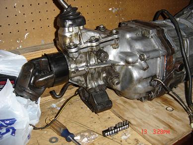 the brake pedal takes 10 mins putting the clucth pedal and master is a snap but make sure you have the clucth lines set up before you set up your master. i wasnt able to finish my swap but putting the pedals in were deffinatly the easiest part. (dont know how to wire them up) to figure out what trans you have look on top of the gear box and there are thoose grove things. mcompare them with this photo. this is a r-154 and it came out of a turbo supra.