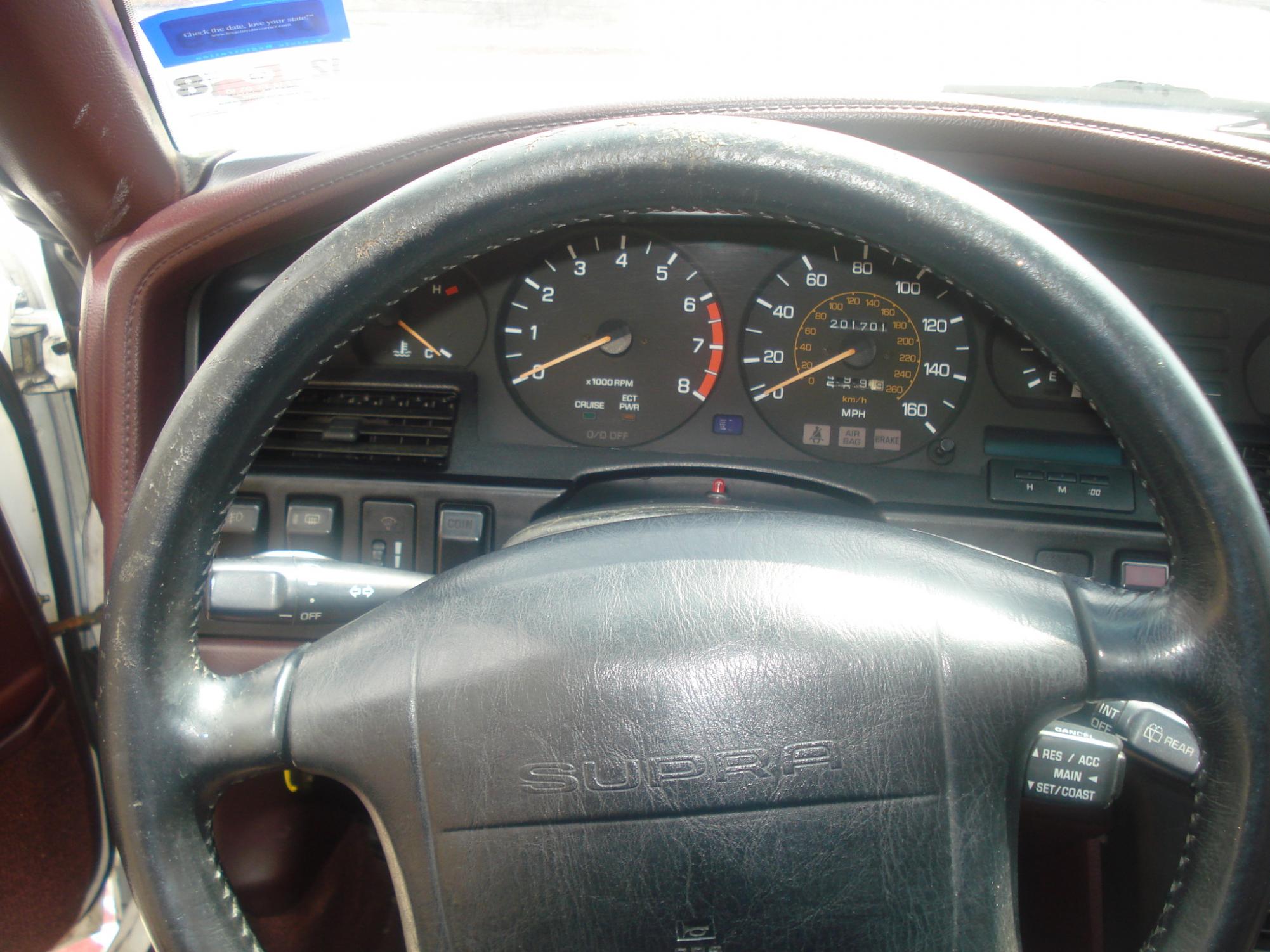 I am new to the forum and wanted to post some pics of a 1990 (auto, i guess you can't get everything you want) targa top I bought for $200 bucks. The title was clean, no issues. The owner said it had a blown head gasket and was his son's car. He said he didn't want to invest anymore money into it so he was going to buy his son a new car. He sold it to me for 200 bucks and I saved all summer (I got it in June) and finally got enough money together for a new rebuilt turbo 7mgte. I found a great guy who I think will do a great job. Once the car is running I will work on the body (some minor rust spots and new paint job is in order) and then move on to the seats. Besides the seats being in bad condition the dash and other interior parts are in pretty good condition. First problem I ran into was that the engine was already replaced but with a non turbo, so now it’s going to cost a little more to get her running because I need some extra turbo parts. I was glad to save her from the junk yard and look forward to making her new again. Engine, body work/paint job and seats are all issues. So far this hasn’t been too cheap ($1800 for rebuilt 7mgte plus any other needed part plus no turbo at all in the engine) but I don’t mind saving and making it look new again. Any recommendations or helpful hints and tips are welcomed. Attachment 2452
